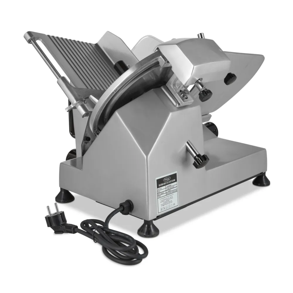 Професионалната колбасорезачка с диаметър на ножа 25 см е надежден и ефективен уред, подходящ за нарязване на месо, сирене, хляб и други продукти с прецизност и лекота. Дебелината на резените може да се регулира от 1 до 12 мм, което позволява гъвкавост според нуждите на кухнята.