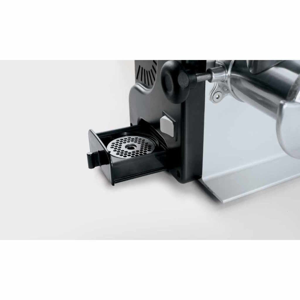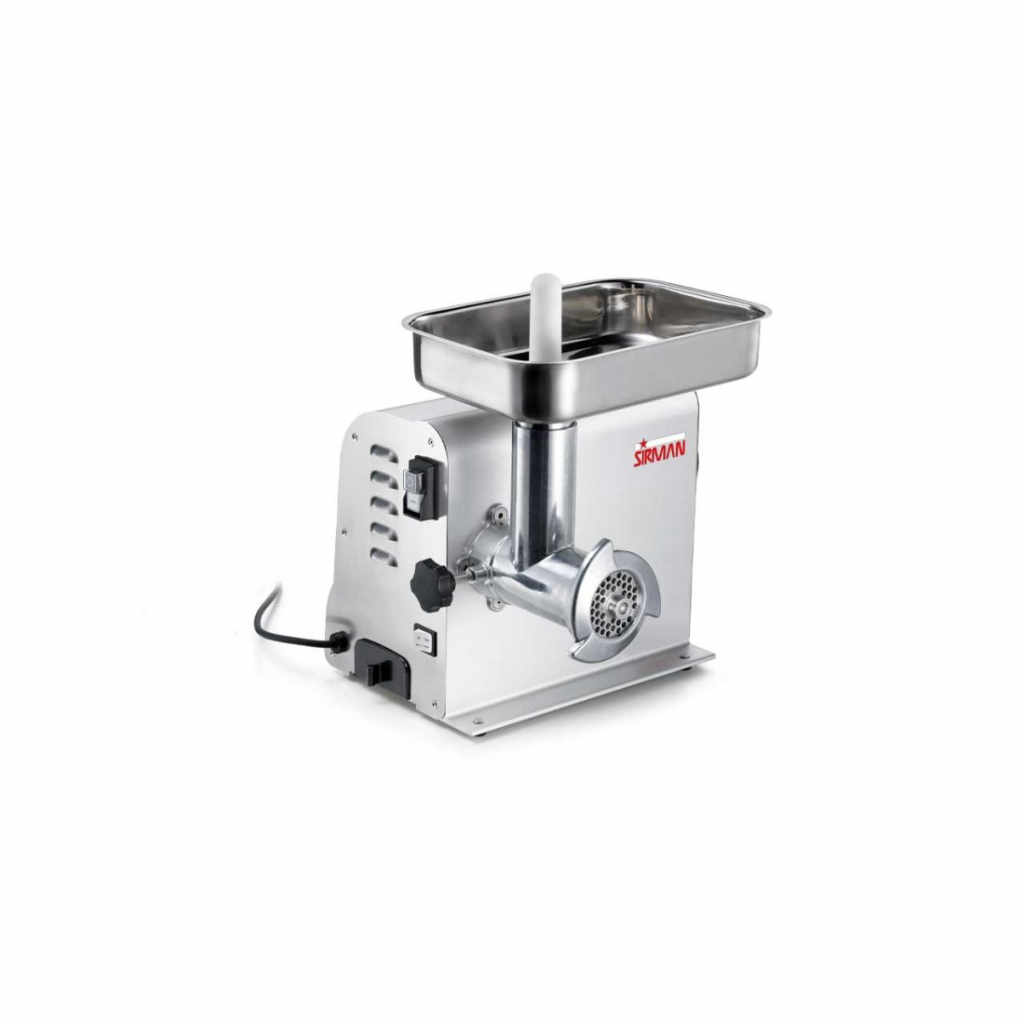 Професионална месомелачка за интензивна и надеждна работа в HoReCa сектора. Подходяща за ресторанти, месарници, хотели и кетъринг, тя осигурява бърза и качествена обработка на месо. Корпусът е изработен от анодизиран алуминий с устойчиви ABS страни, а вентилираният мотор и маслената баня на предавките гарантират дълъг експлоатационен живот. Разполага с реверс функция, неръждаеми ножове и плочи, IP54 защита и NVR устройство. Капацитет до 12 кг/час.